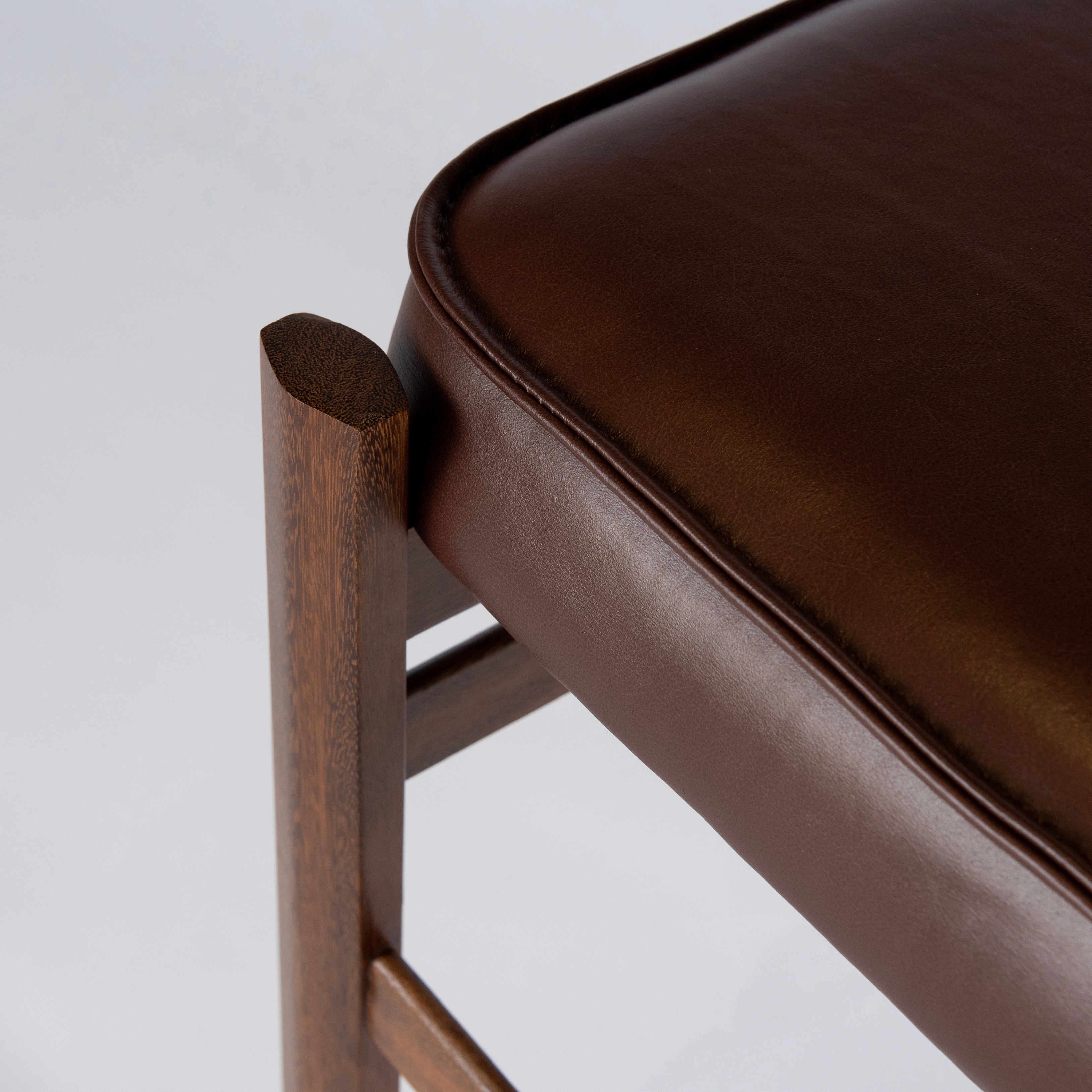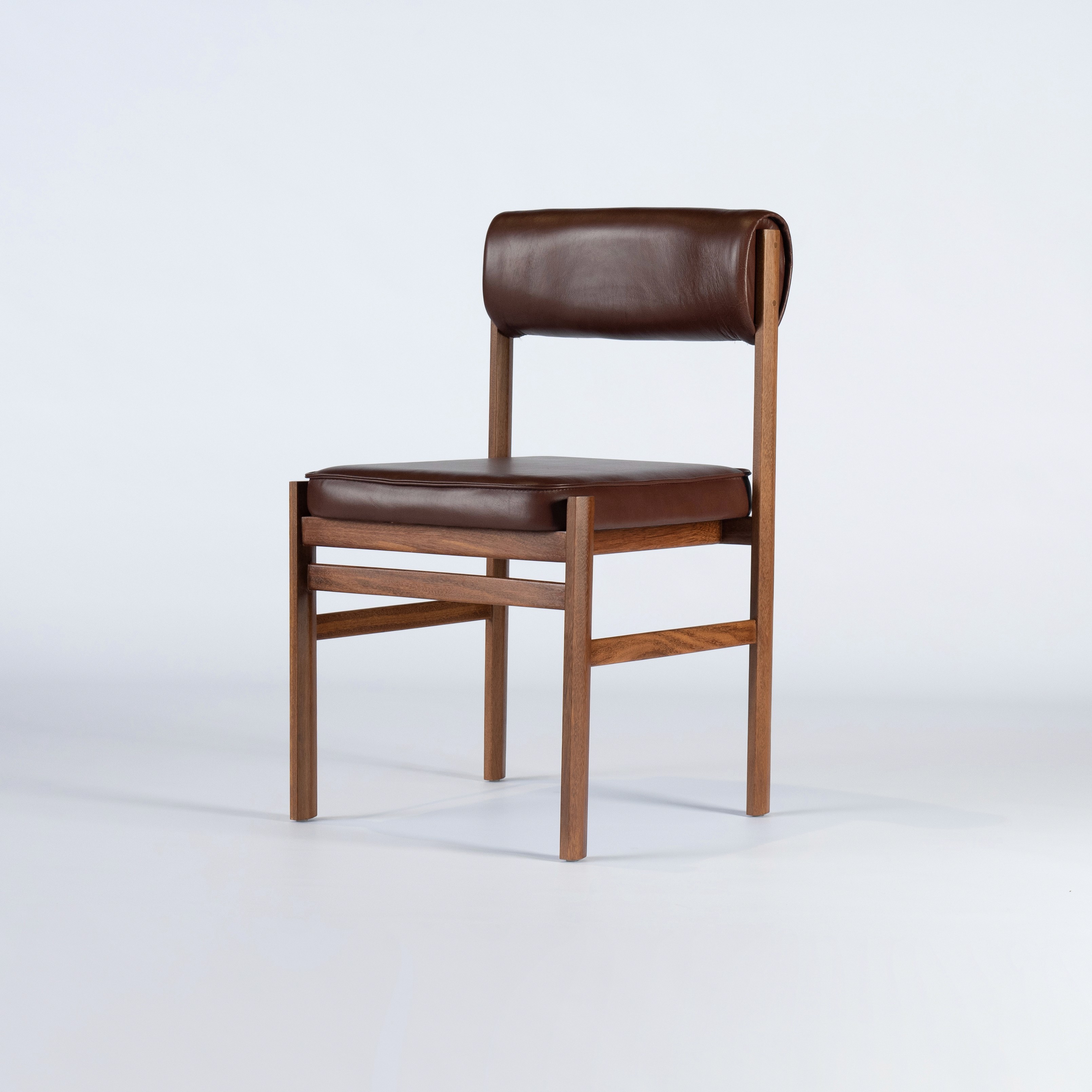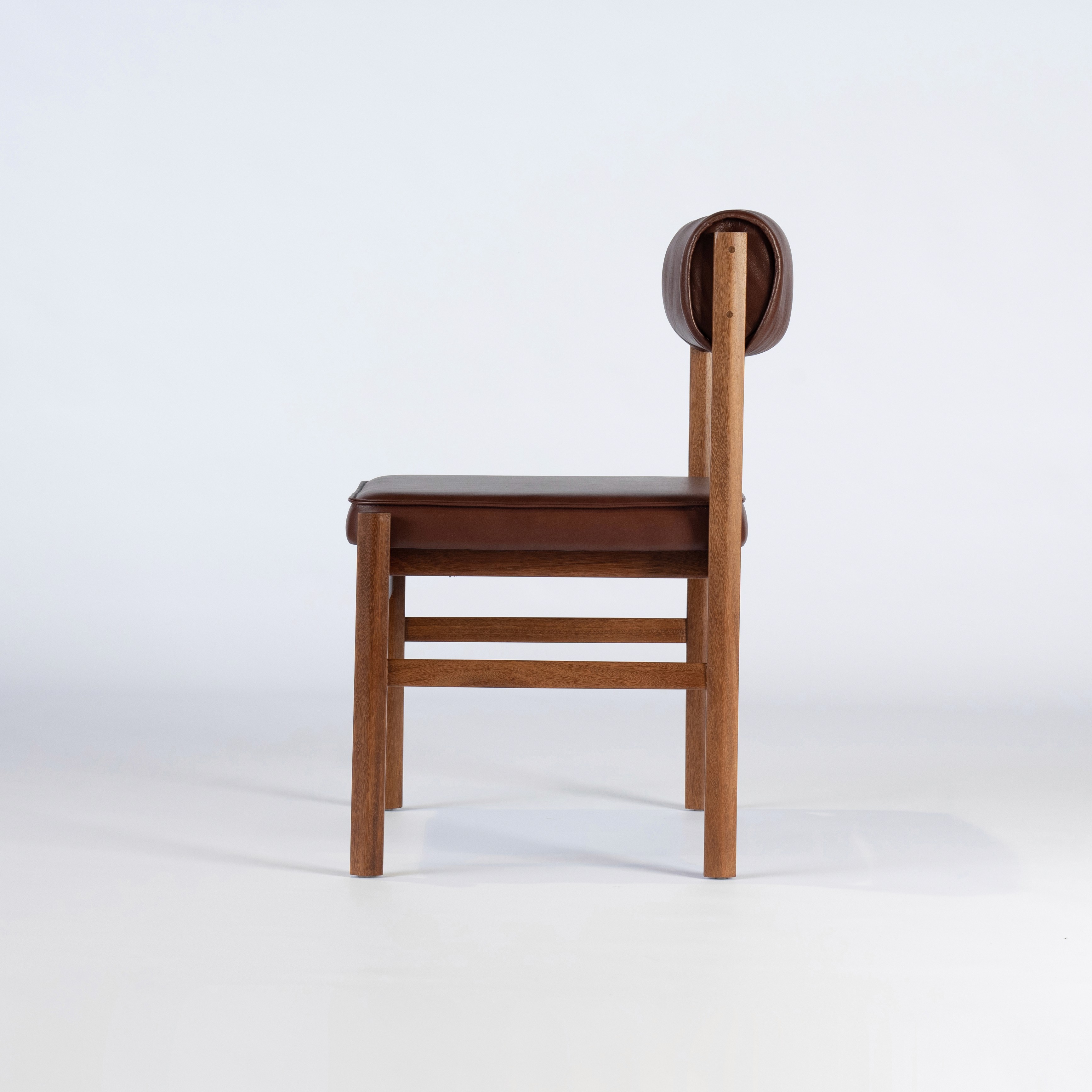 Inspirada no modernismo da década de 1960, a Cadeira 60 faz parte da nossa nova coleção Futuro Retrô. Seu desenho combina linhas retas, ângulos definidos e proporções equilibradas. A estrutura em madeira maciça de cumaru sustenta assento e encosto estofados, reforçando sua leitura racional e atemporal.